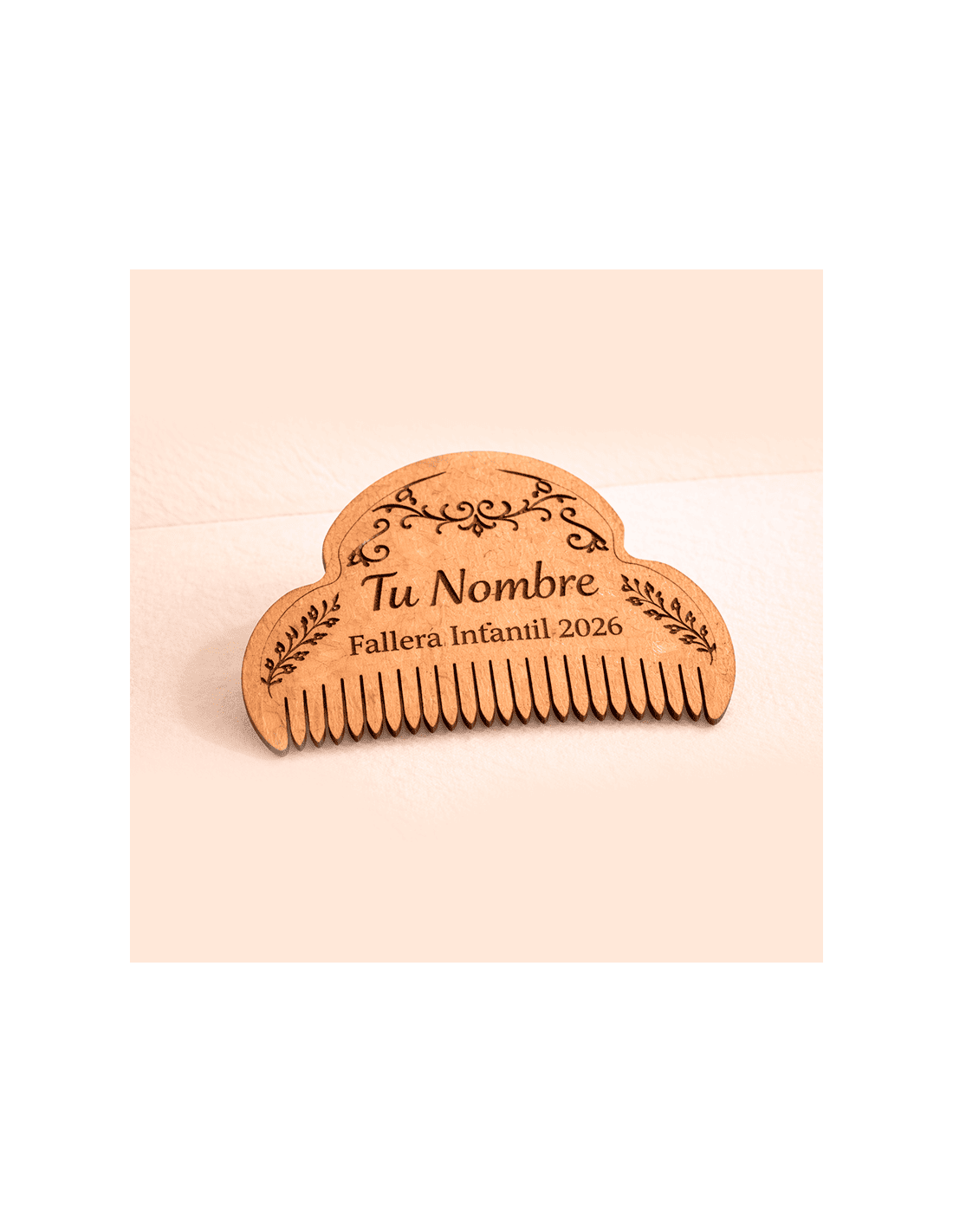 Elegante peineta decorativa fabricada en madera y grabada con láser, personalizada con el nombre y el título fallero.